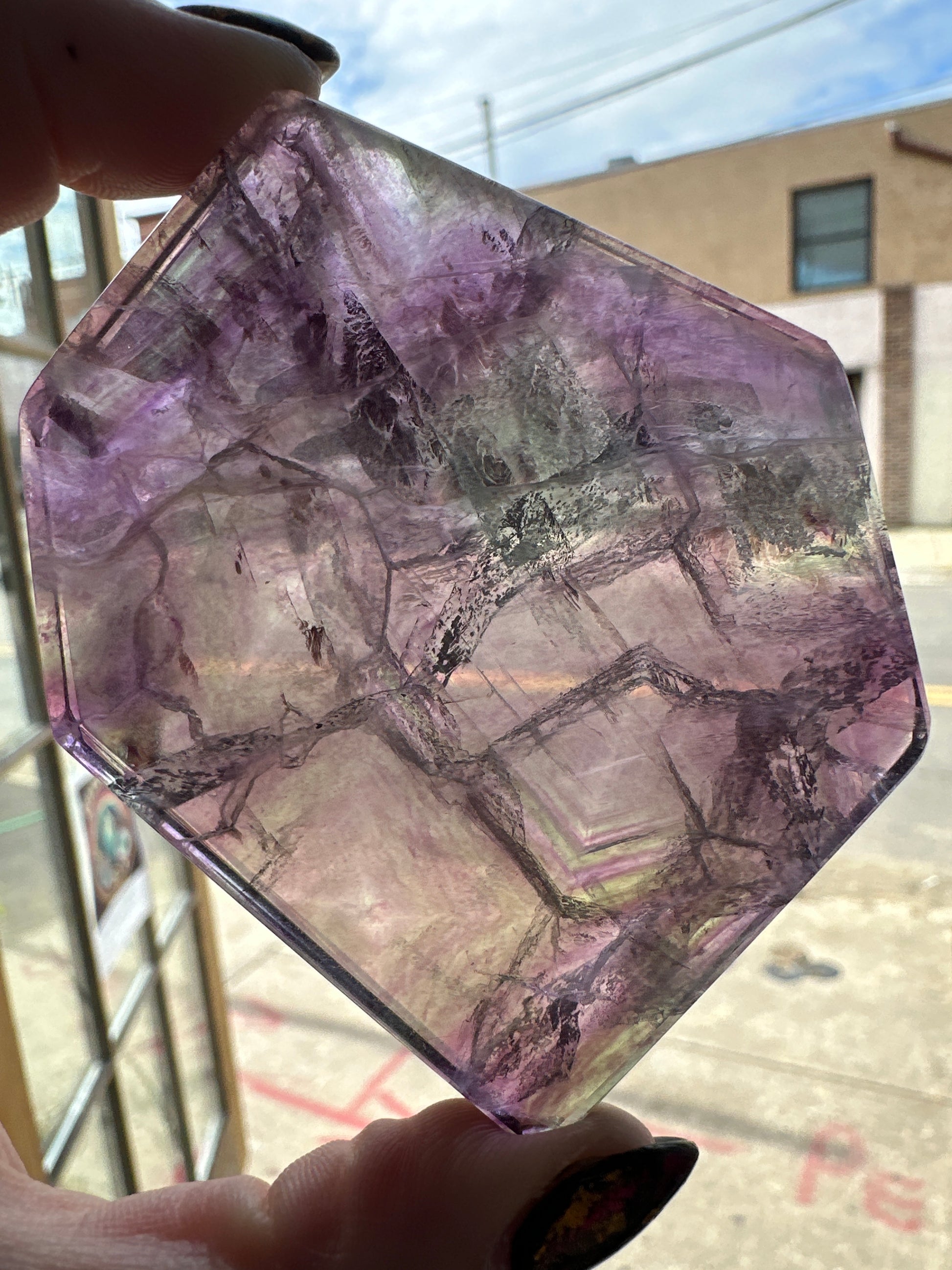 Gorgeous fully polished (front, back, & sides) purple fluorite slab with hint of green. Very pretty zoning!