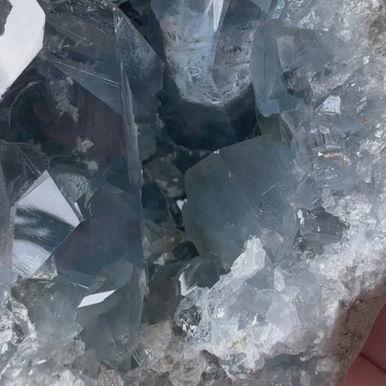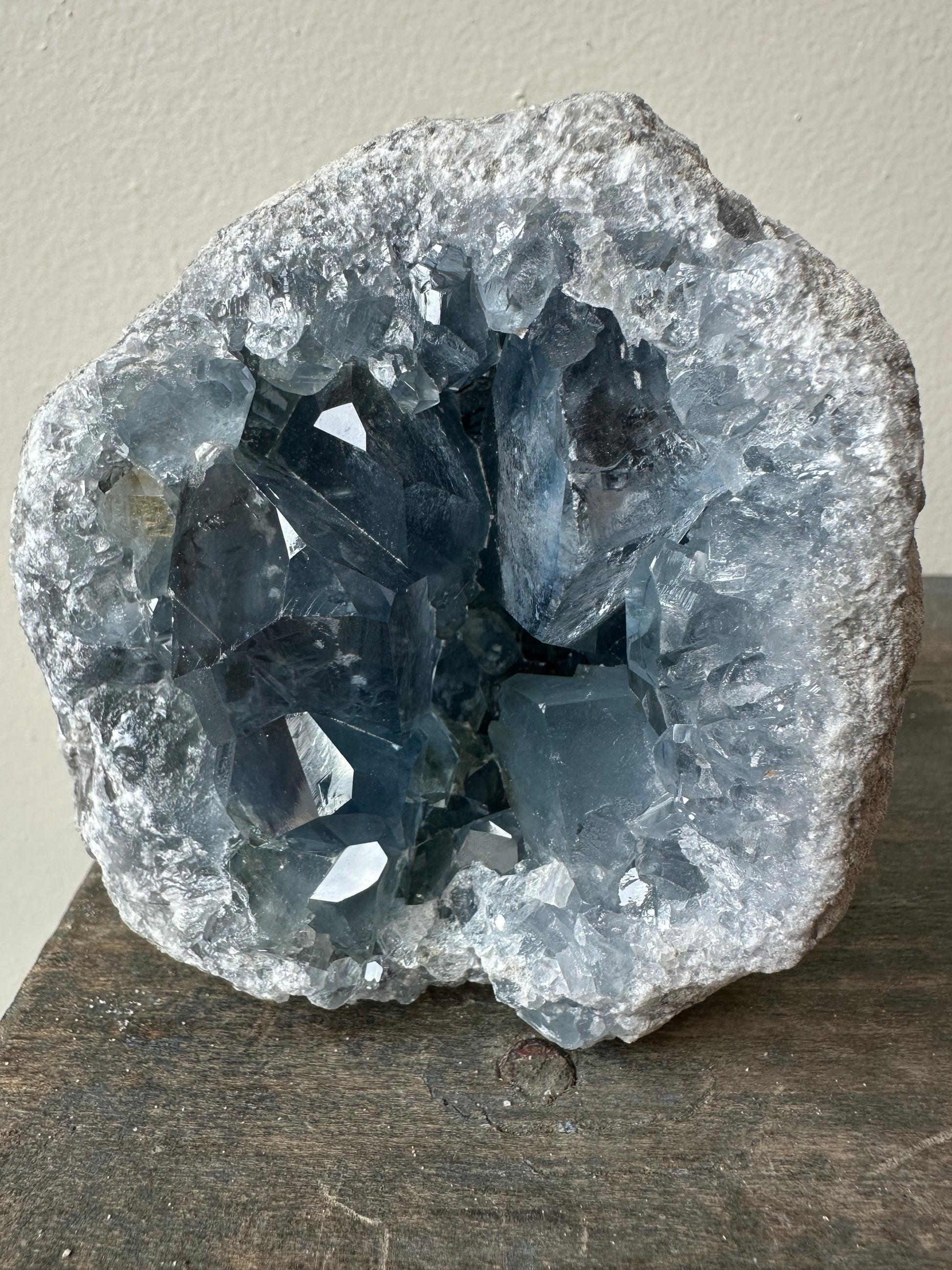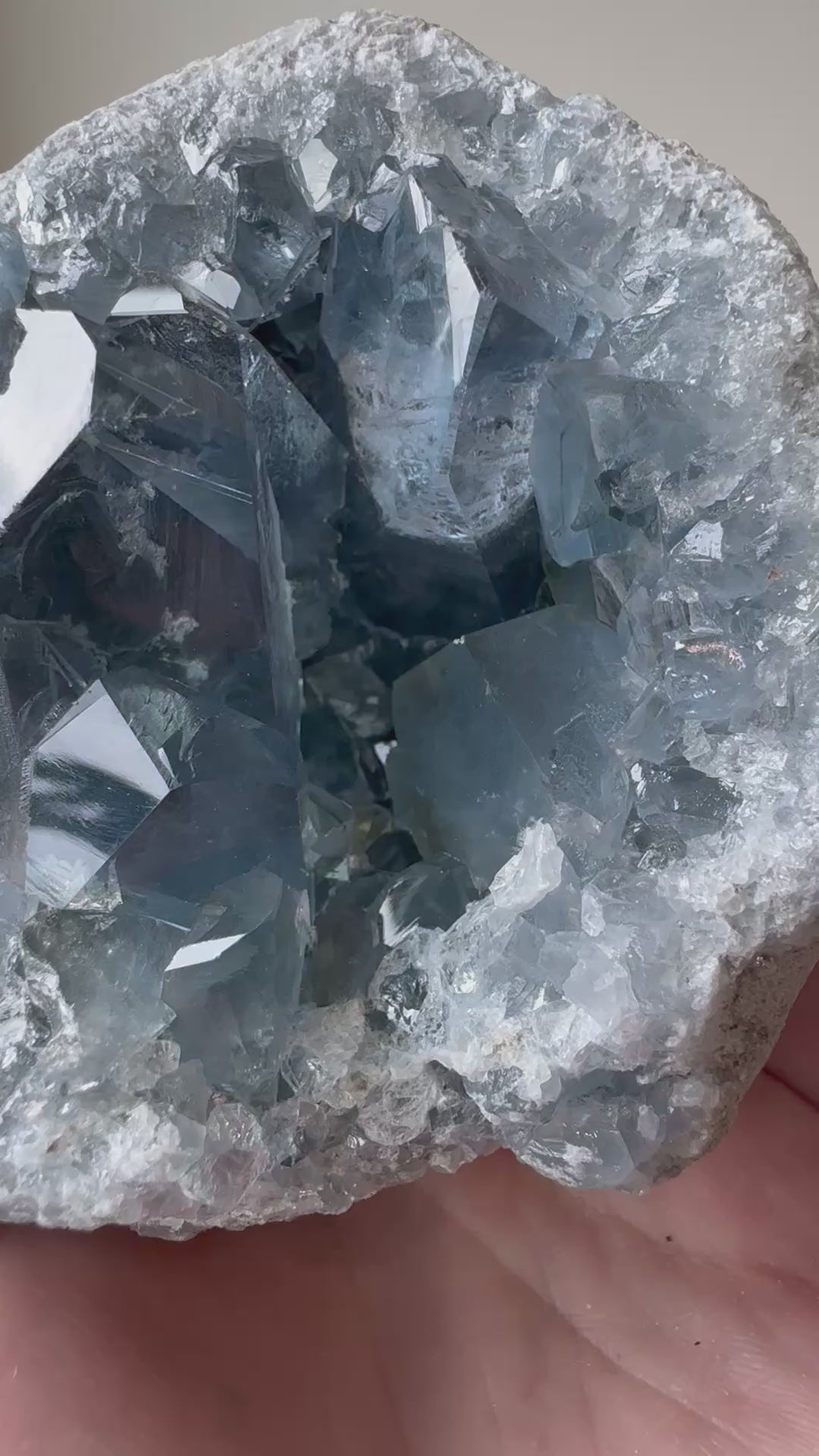 High-grade Celestite (Celestine) geode from the Sankoany deposit, located near Katsepy and Mahajanga, Madagascar.