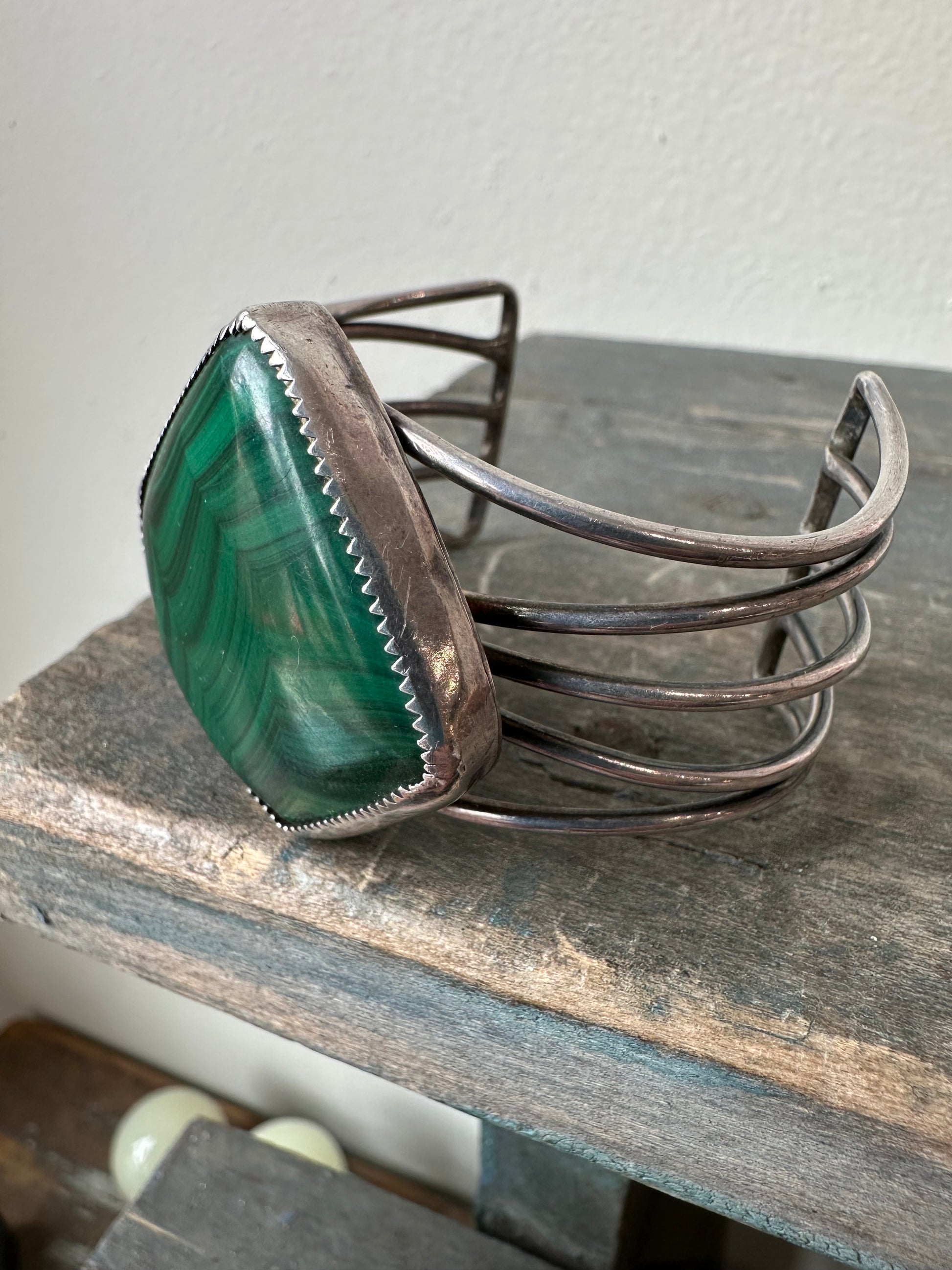 Vintage/Antique Malachite & Silver Cuff